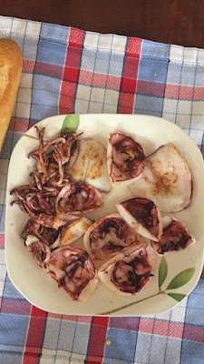 Como comentaba antes, fue un mes duro de triperío y en el que se suele tener mucha sed dada la gran pérdida de líquidos. Nosotros, lo solemos hacer extensible a todo el año por precaución, ¡jeje! Ésta es otra de mis debilidades. Con buenos frutos frescos del mar y de la huerta se organiza rápidamente una barbacoa.