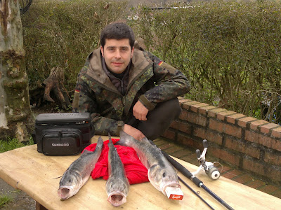 Cuando cambiaron de puesta, me quedé en la puesta de origen, pero nada más que desaparecieron de mi vista, subí al coche a toda pastilla y me fui a casa a ducharme y cambiarme. Luego retrocedí hasta el restaurante Ibarbia en Saltacaballo y les llamé diciéndoles que estaba allí. Estaban ya recogiendo y cuando llegaron, ¡sorpresa!, un tío de bonito y es que les tengo dicho: "Cuando no está la mar, pal bar" como dice nuestro amigo astur Lalo. A propósito, un saludo y también a Pín, Arango, Carlos y toda la tropa.